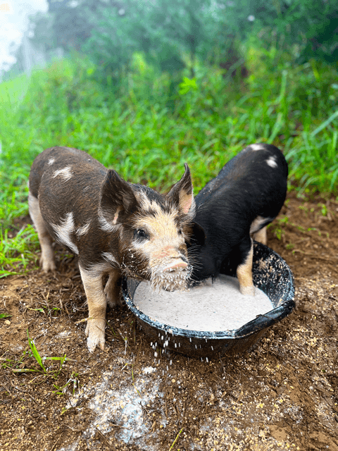 At this time, we do not keep breeding pigs, but we do keep what is known as βfeeder pigs.β This means that we purchase piglets with the intent of growing them out to feed our family. Our current girls are Charlene and Darlene and have been such a fun first experience raising pigs!