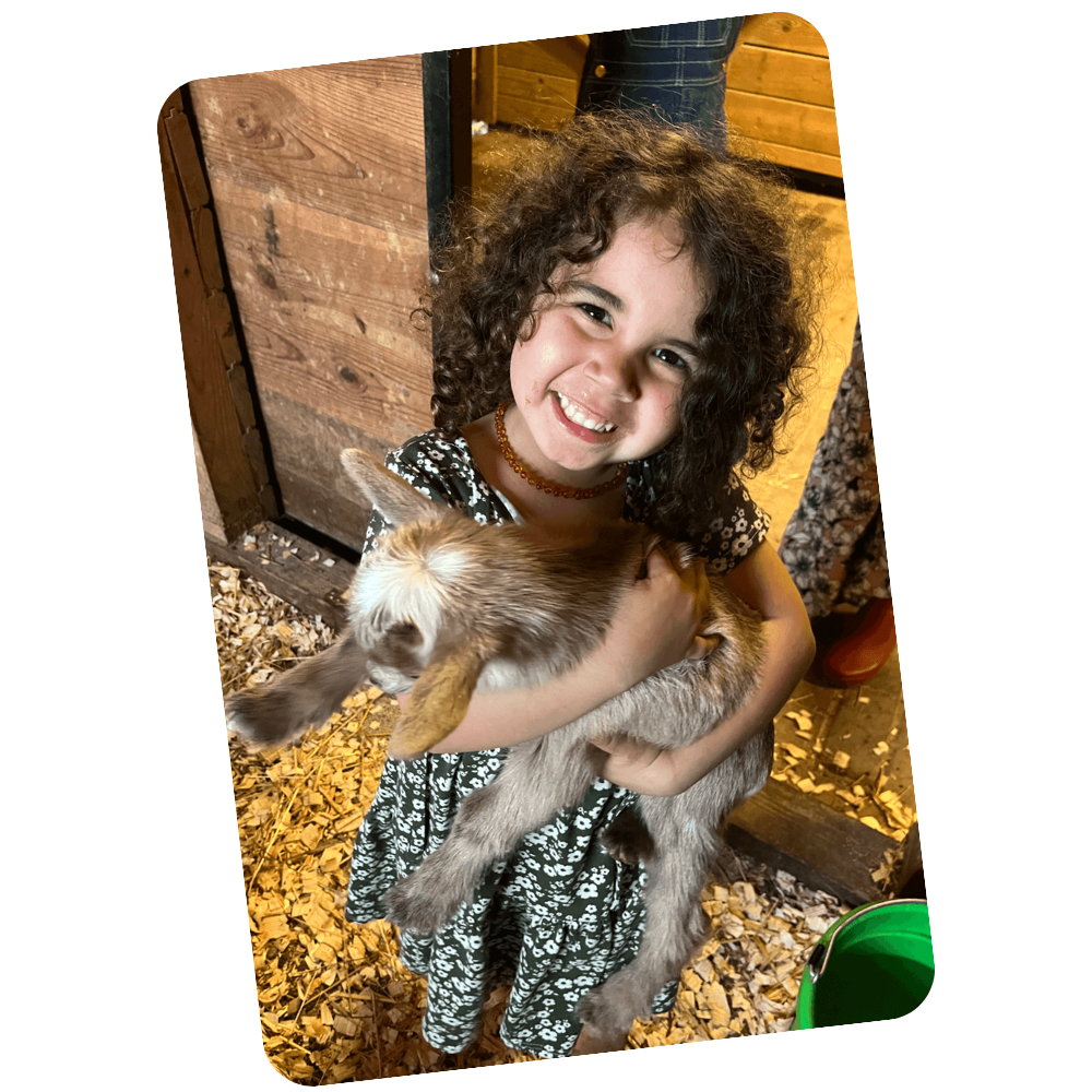 Semi is a Kinder (a dual purpose Nubian/Pygmy cross) who gave us surprise bucklings 4 months after we bought her. She gives delicious, sweet milk, and is one of the most unassuming goats you would ever meet.