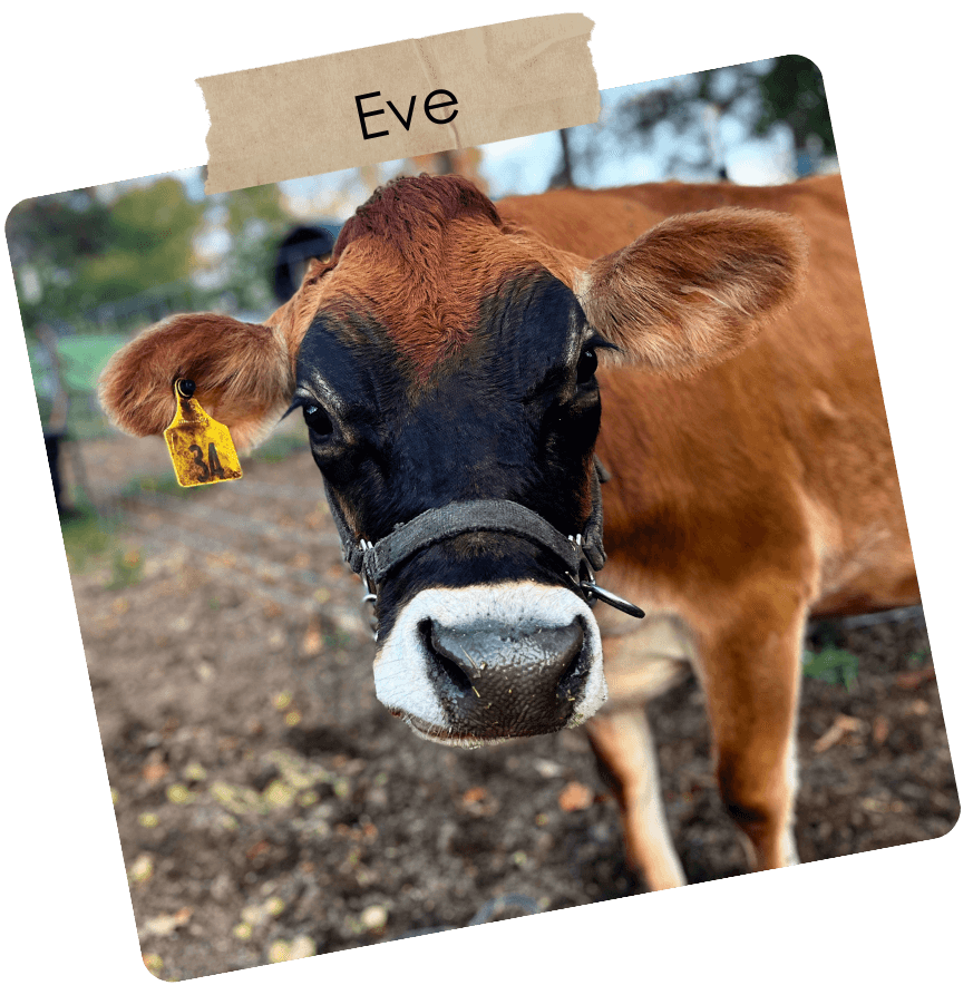 Our milk cows are Fiona and Eve. Since July 2024, Fiona has been giving us about 14 gallons of milk every week while also raising her calf. She will be dried up in late spring, anticipating a mid-August delivery of her new calf. Eve is expecting her first calf in September and we eagerly await her freshening for the first time!
